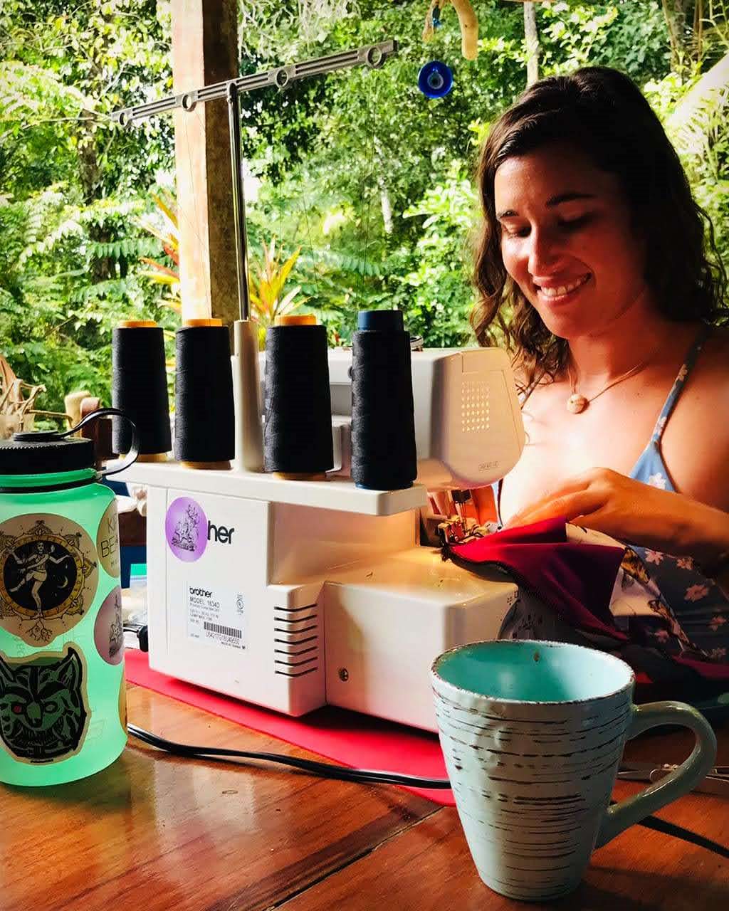 Saanti is a surfer, yogini, and the sole force behind SunseekCo, a handmade swimwear brand she runs out of her bedroom sewing studio in Bayside, California. Saanti grew up in Alaska and moved to California when she was 18. She just spent the last two and a half months in Costa Rica living Pura Vida, teaching yoga for Surf with Amigas surf and yoga retreats, and traveling with her sewing machine and a suitcase full of fabric. “The dream for years has always been to live on the beach, surf, and sling bikinis, so when the opportunity presents itself you take your handmade swimwear business with you and make custom bikinis for the girls!”