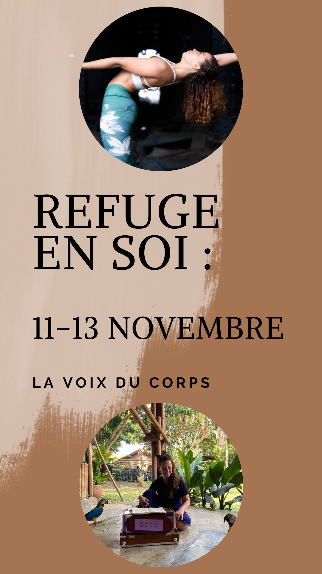 REFUGE IN YOURSELF: from November 11 to 13, 2022 INTENSIVE practice weekend near Geneva 🏔 In the program : – 1 foundation and flow workshop – 1 arms balance & inversions workshop – 1 intuitive dance workshop & sacred songs – 1 backbend workshop – 1 initiation to Thai massage…